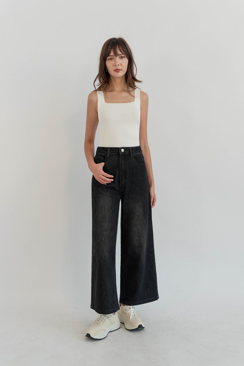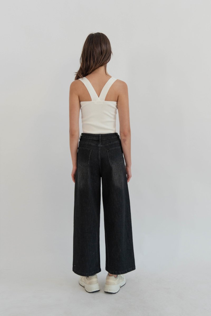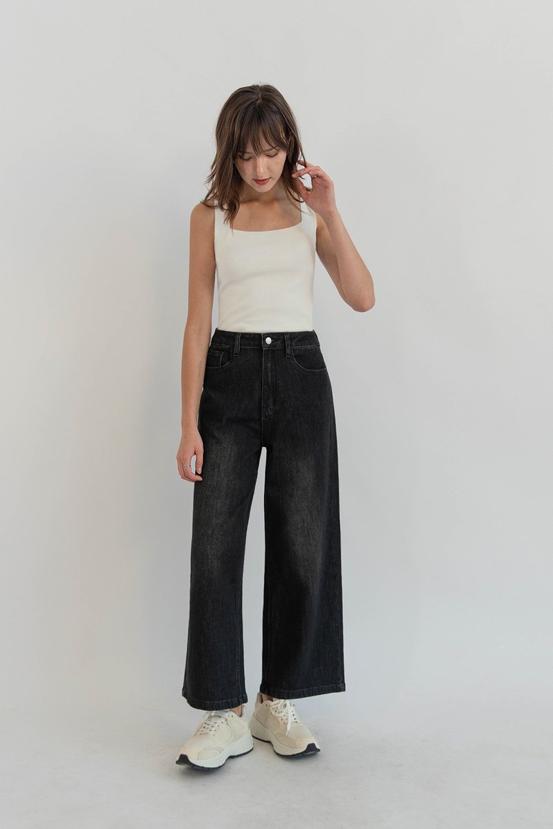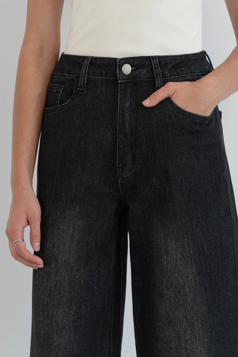ABEL MIDRISE WIDE DENIM JEANS (PETITE) WASHED BLACK