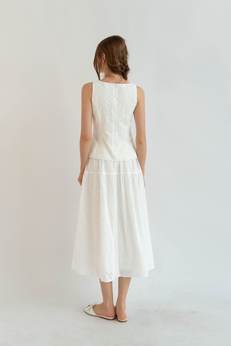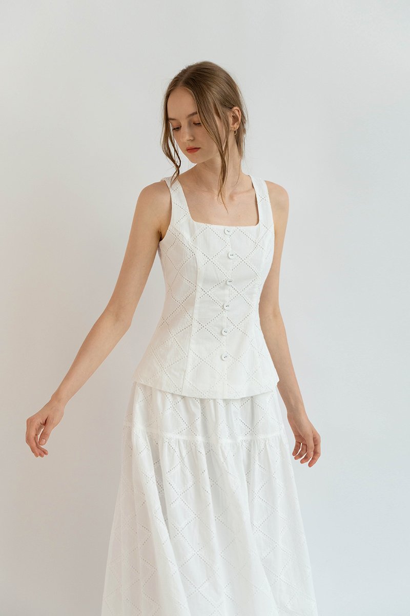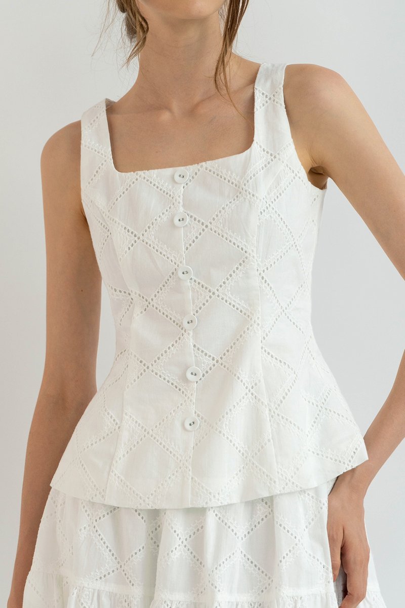 ALEGRA BUTTON VEST TOP WHITE EYELET