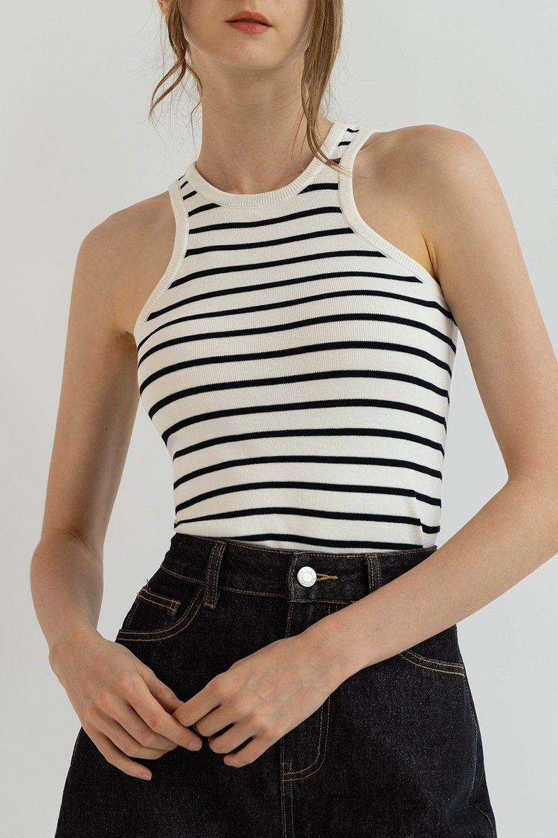ANA RACER FRONT TANK TOP (PADDED) STRIPED WHITE