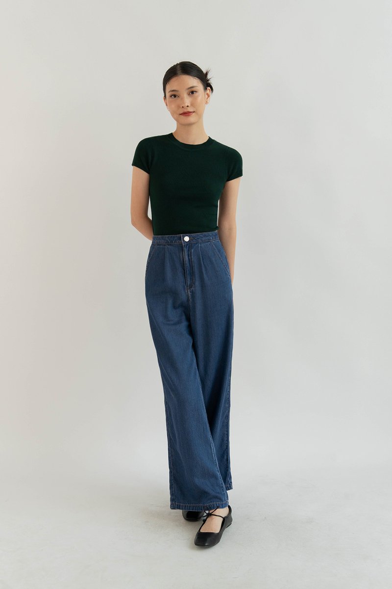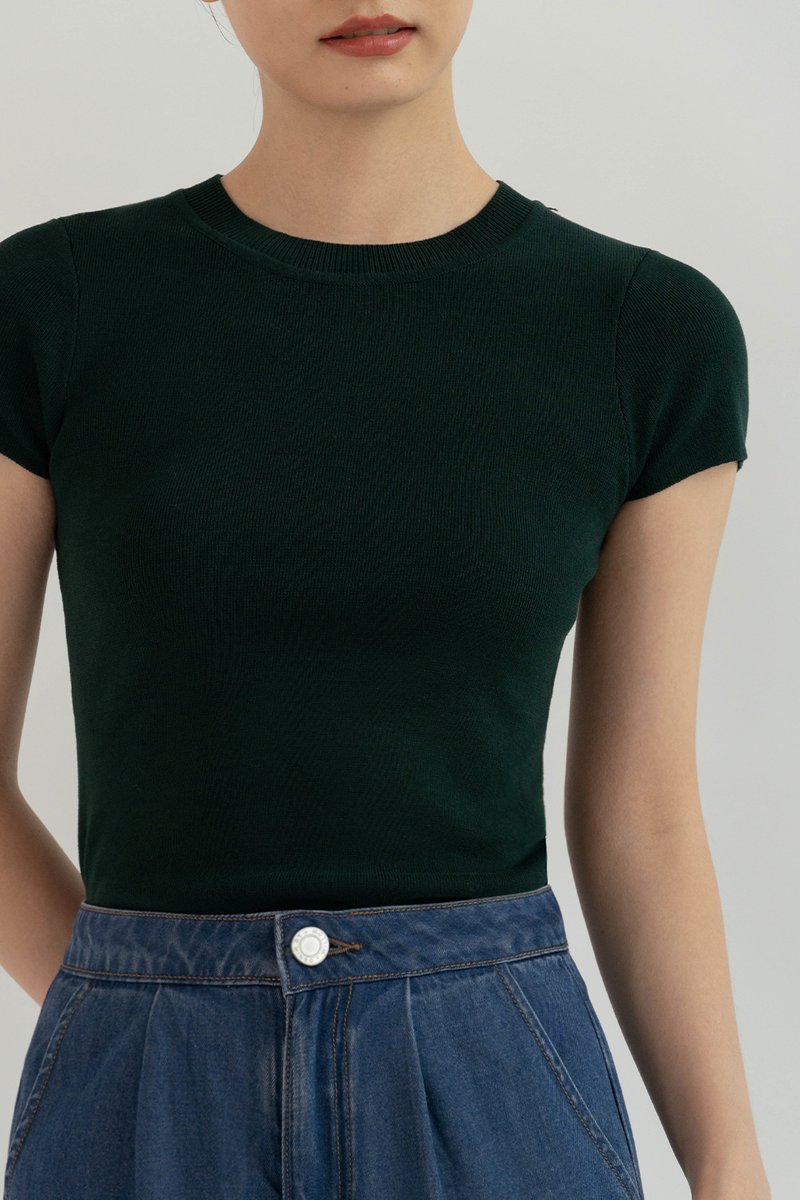 BETH CAPSLEEVE HIGH NECK KNIT TOP DARK GREEN