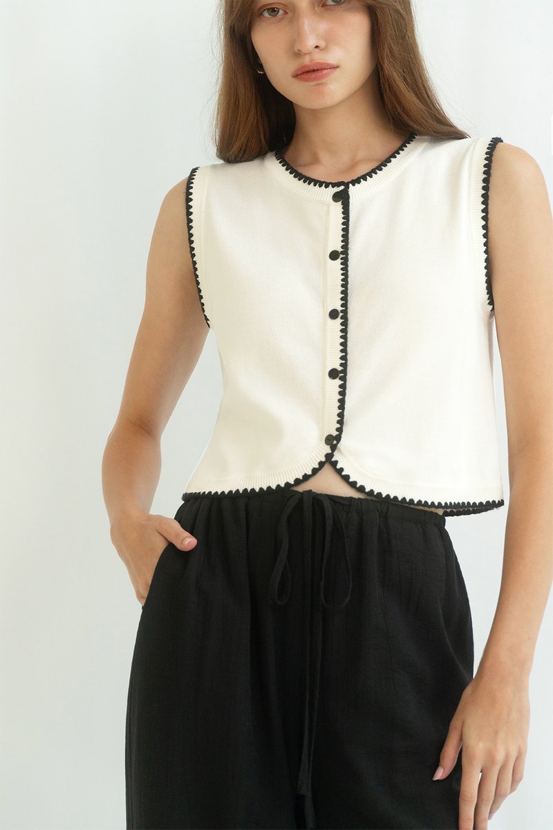 BEVERLY CONTRAST KNIT VEST WHITE