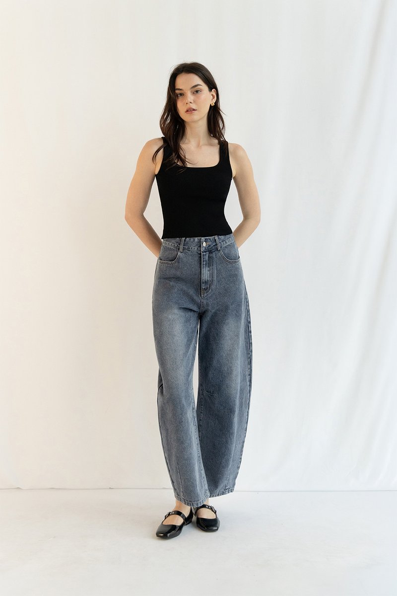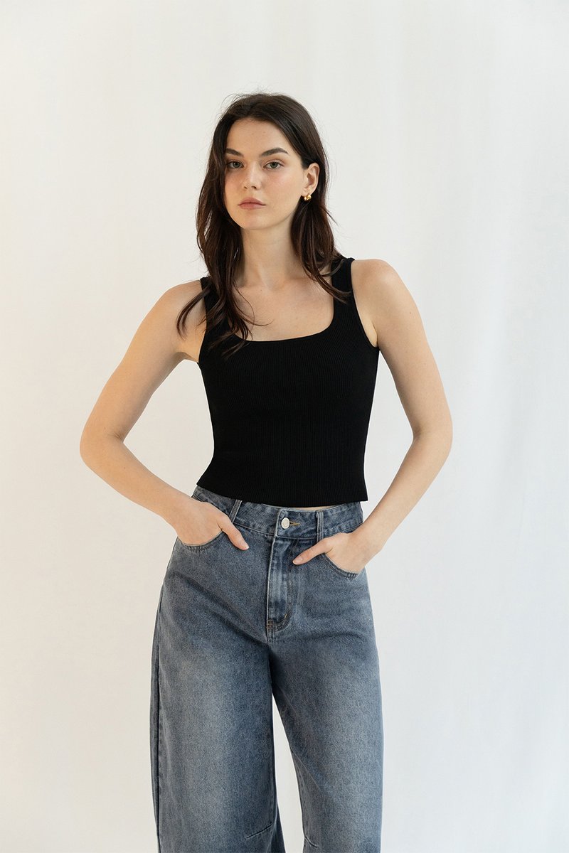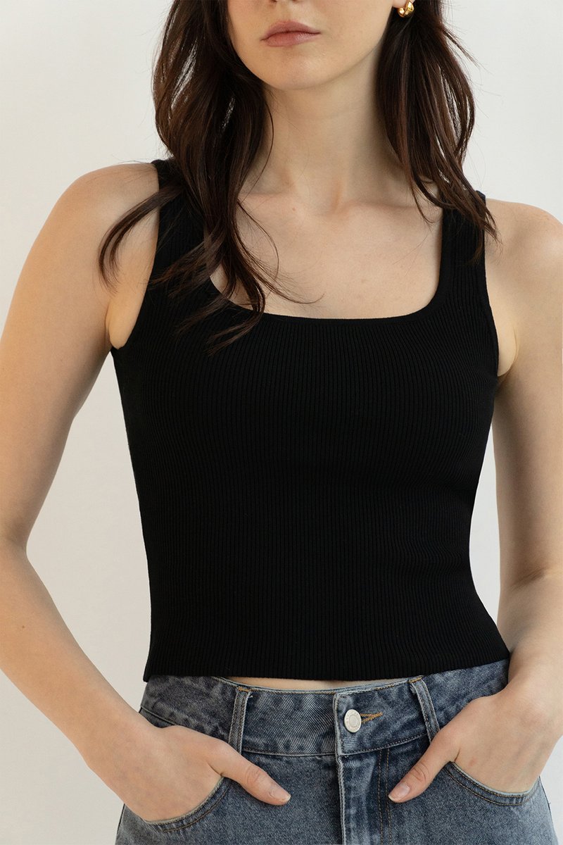 CHARLIZE RIBBED KNIT PADDED TANK TOP BLACK