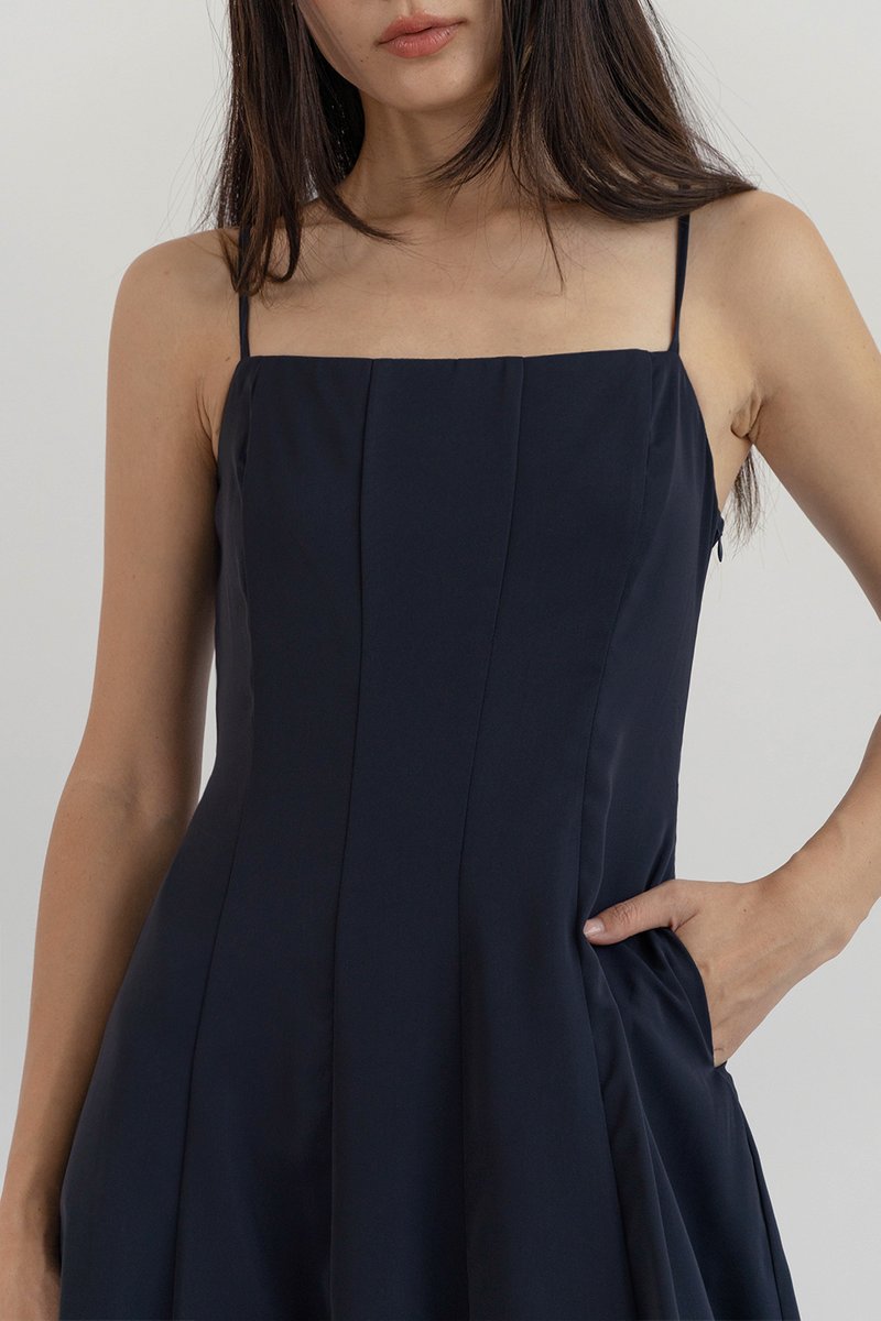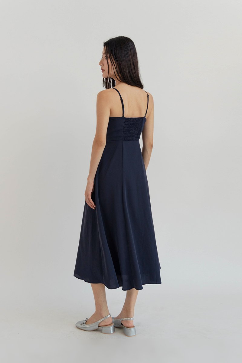 Made of cotton polyester, lined with no stretch except partial smocked back. Comes with functional side pockets and concealed side zip, along with adjustable shoulder straps.
