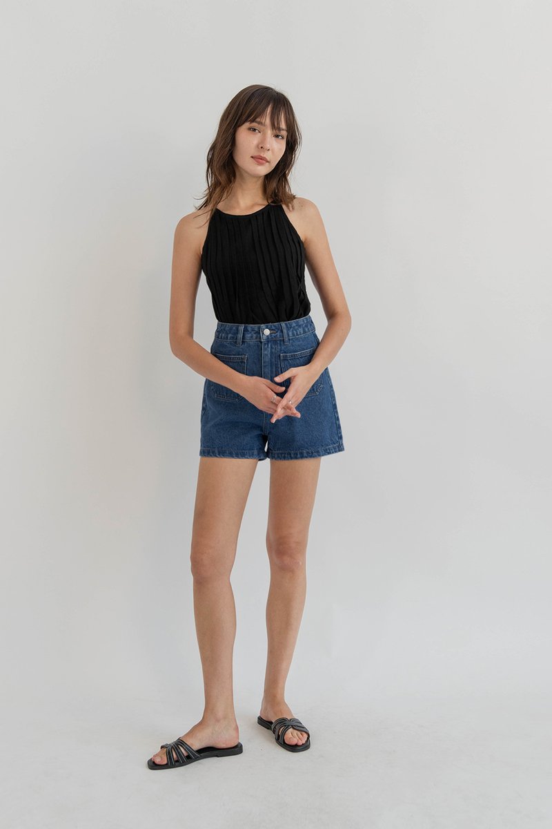 ENYA PINTUCK LINEN TOP BLACK