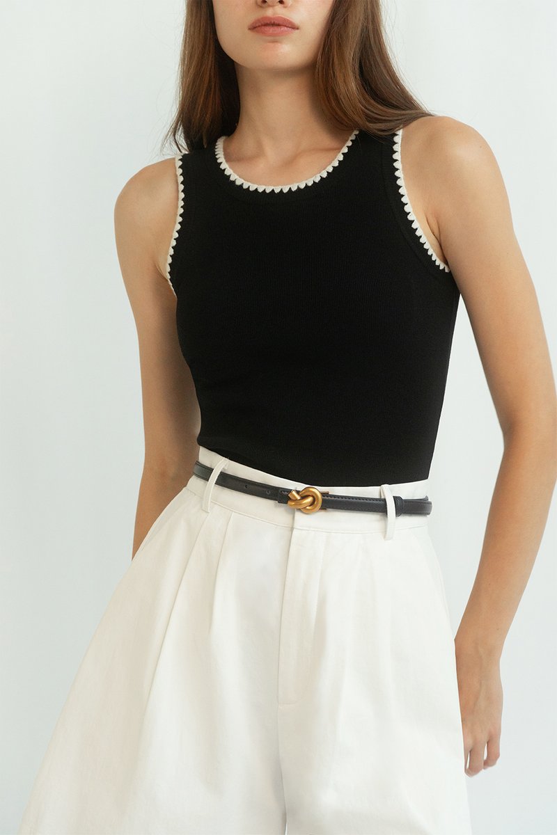 JANIE CONTRAST TRIM KNIT TANK TOP BLACK