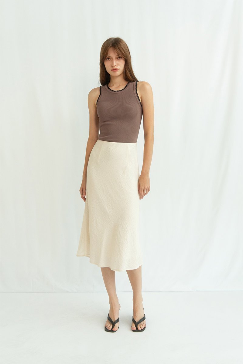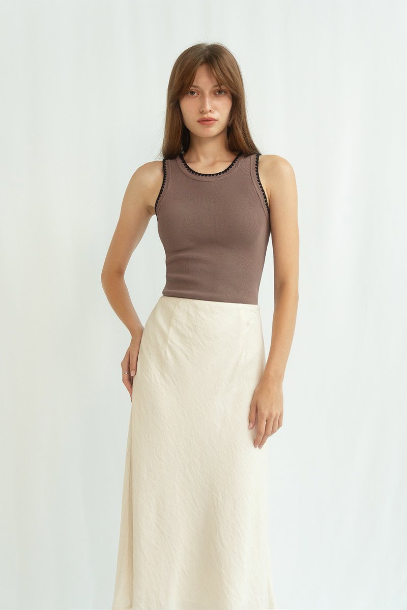 JANIE CONTRAST TRIM KNIT TANK TOP TAUPE