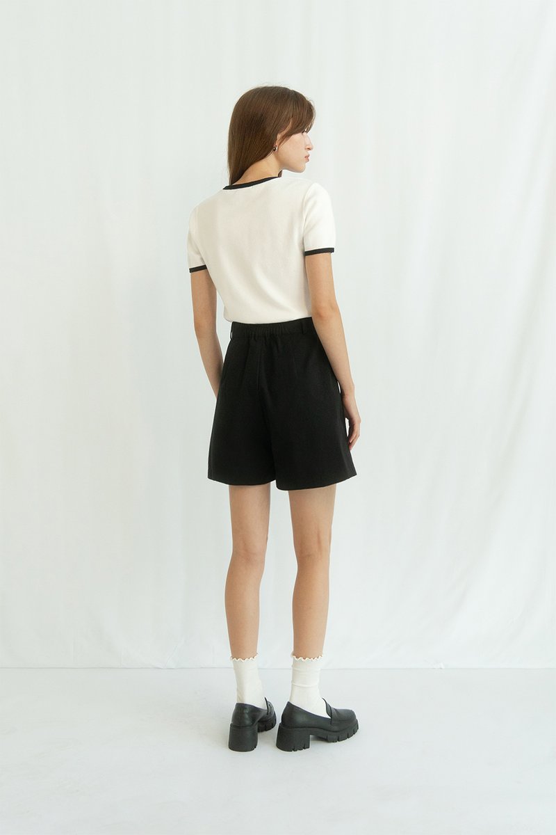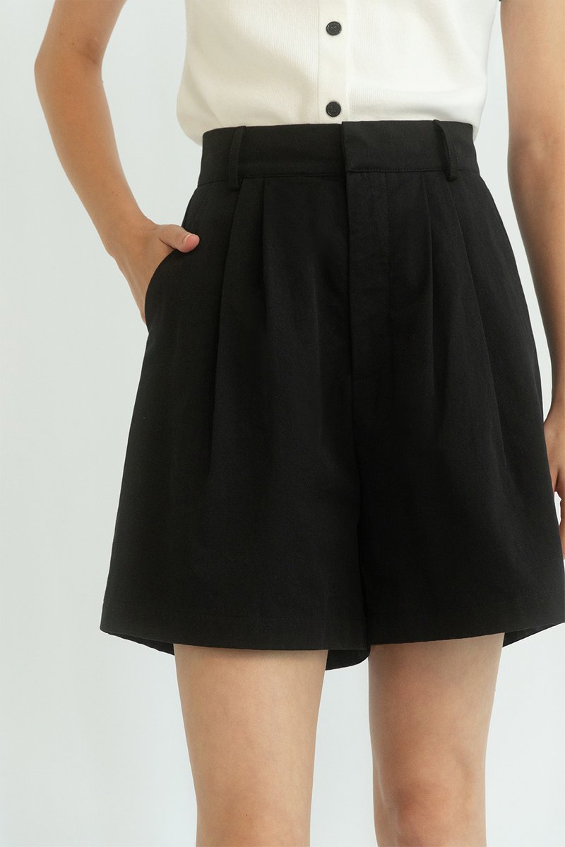 Made of structured linen cotton blend, lined with no stretch except partial elasticised back waist. Comes with functional side pockets, button double hook zip closure and belt loops.