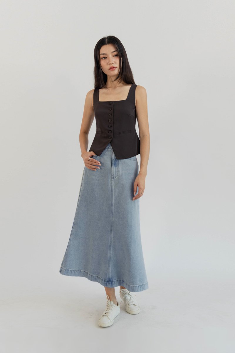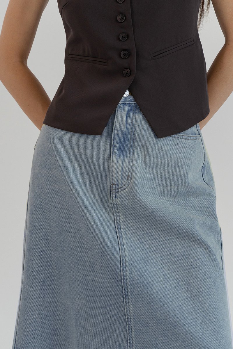 NATALIA FLARE DENIM SKIRT MIDWASH