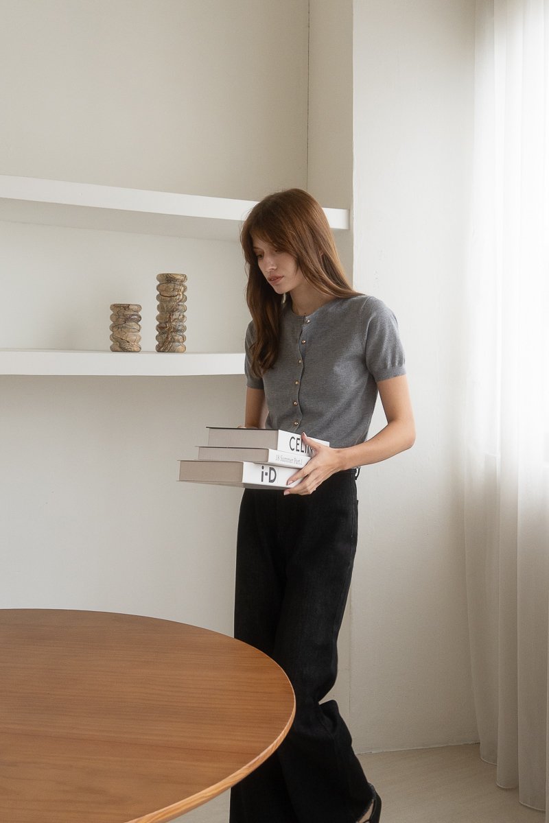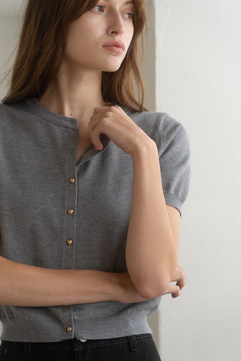 NOLAN SHORT SLEEVE KNIT TOP DARK GREY