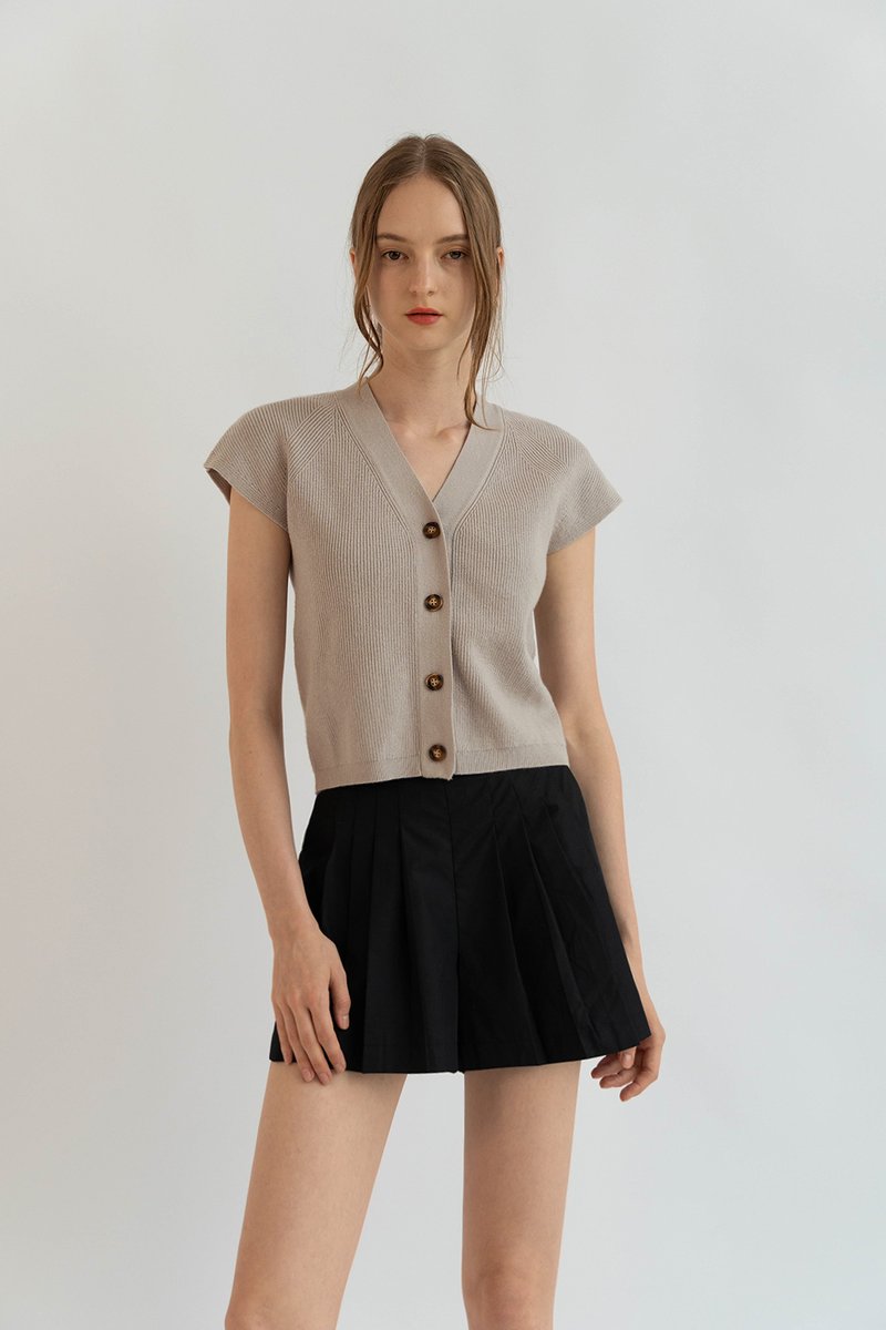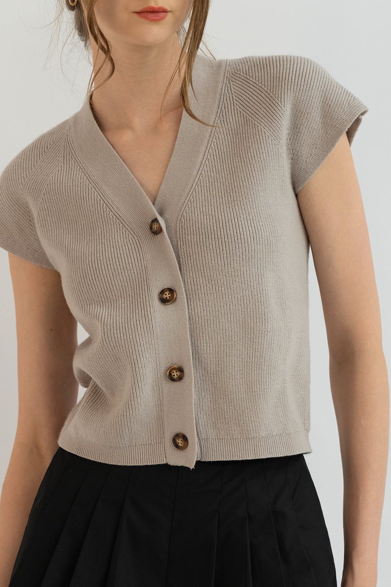 (PREORDER) BRONTE KNIT BUTTON TOP TAUPE