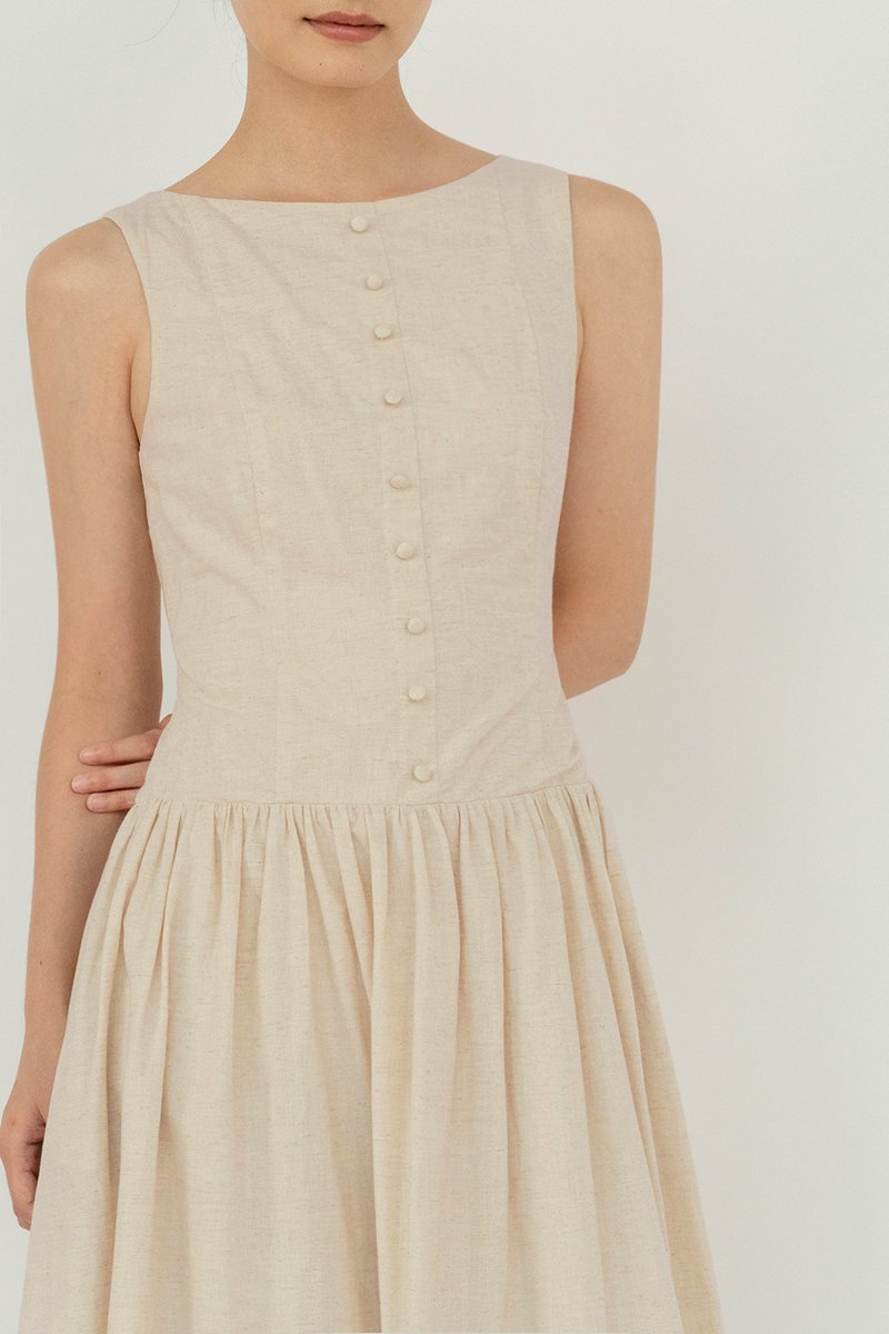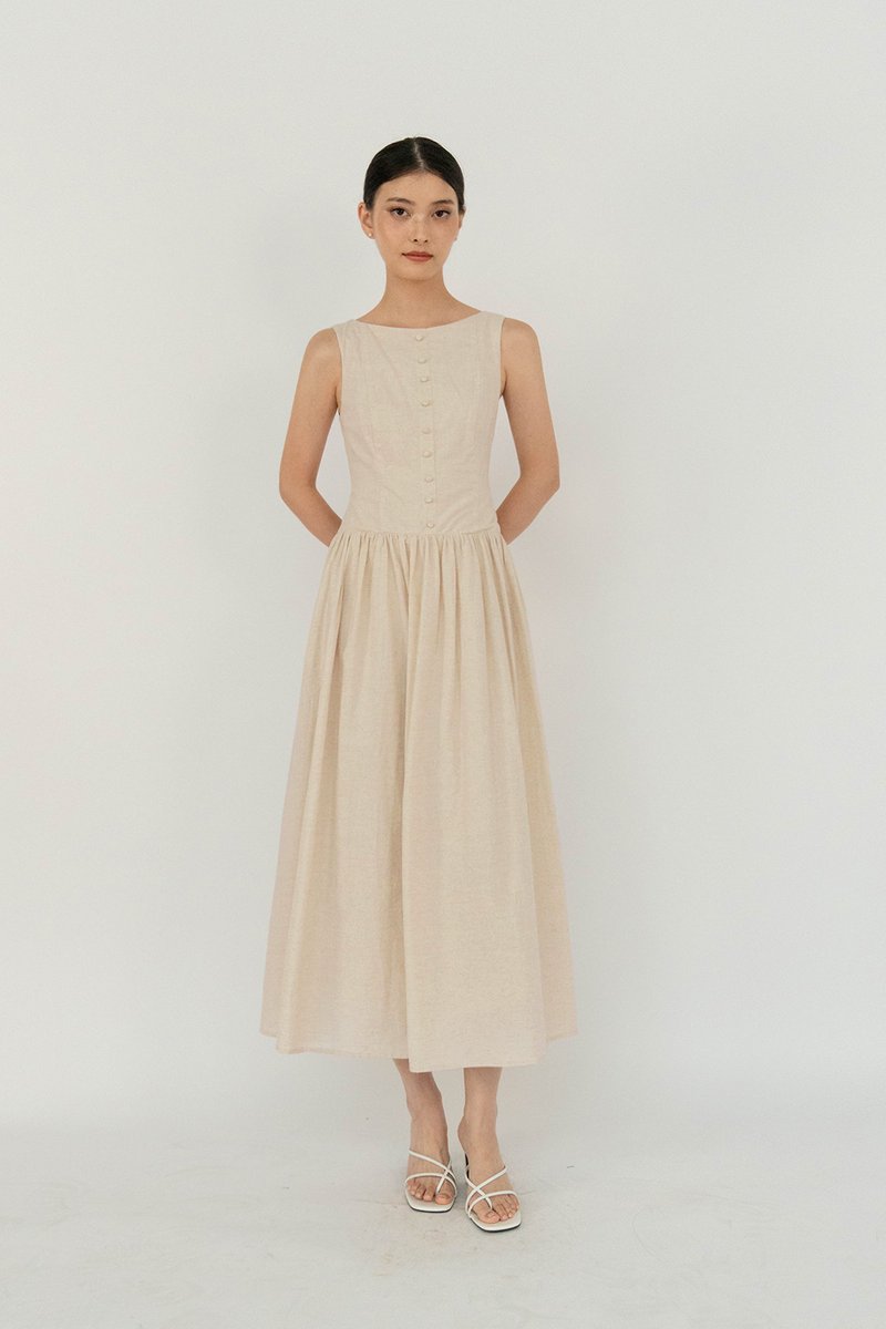 (PREORDER) MEADOW BUTTON LINEN DRESS SAND