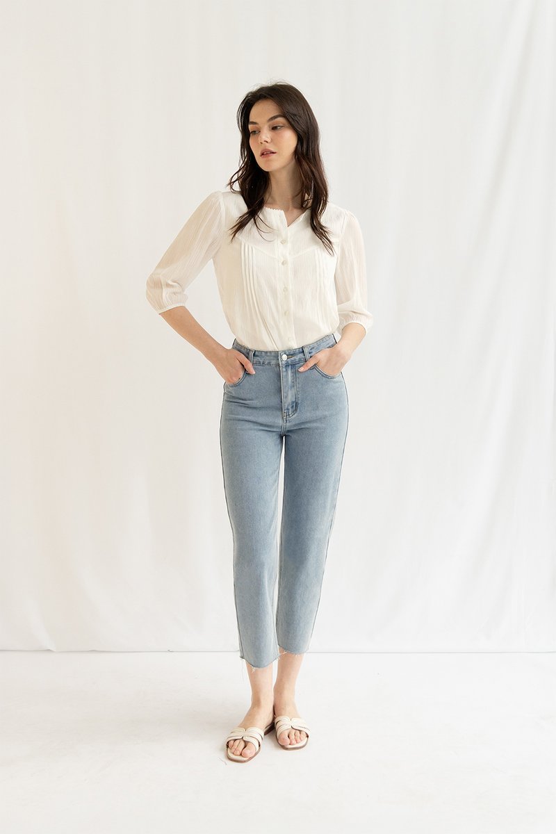 (PREORDER) MELANIE PLEAT BLOUSON TOP WHITE
