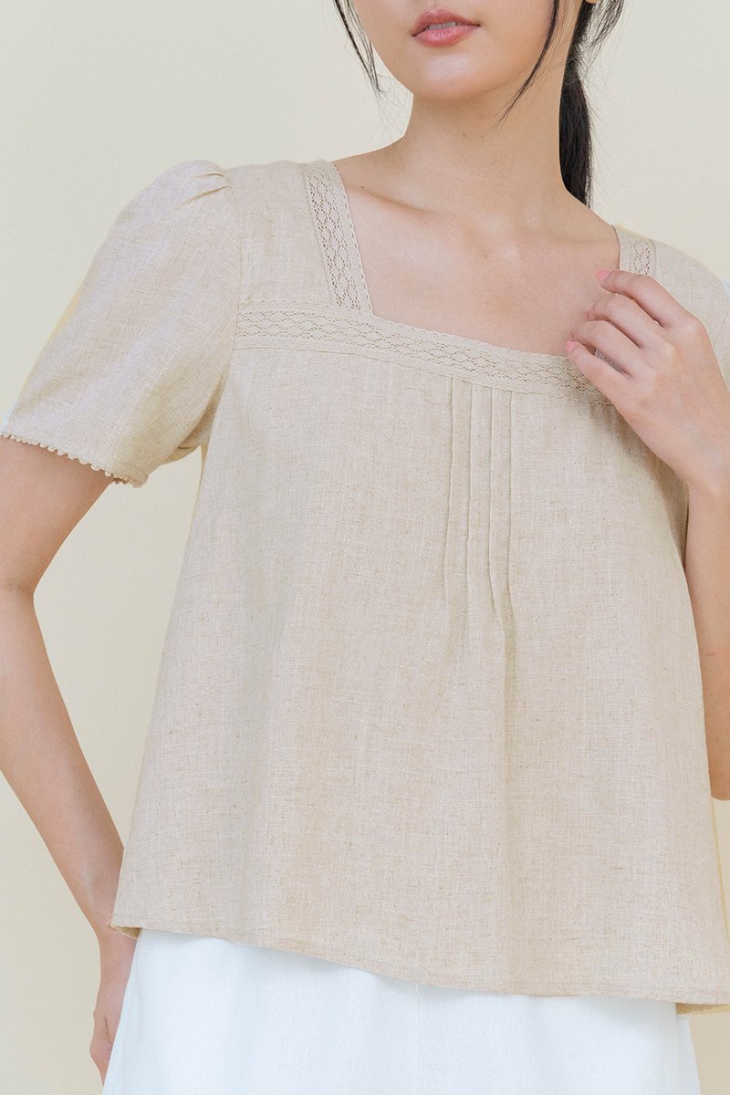 (PREORDER) PENNY LINEN BLOUSON TOP SAND
