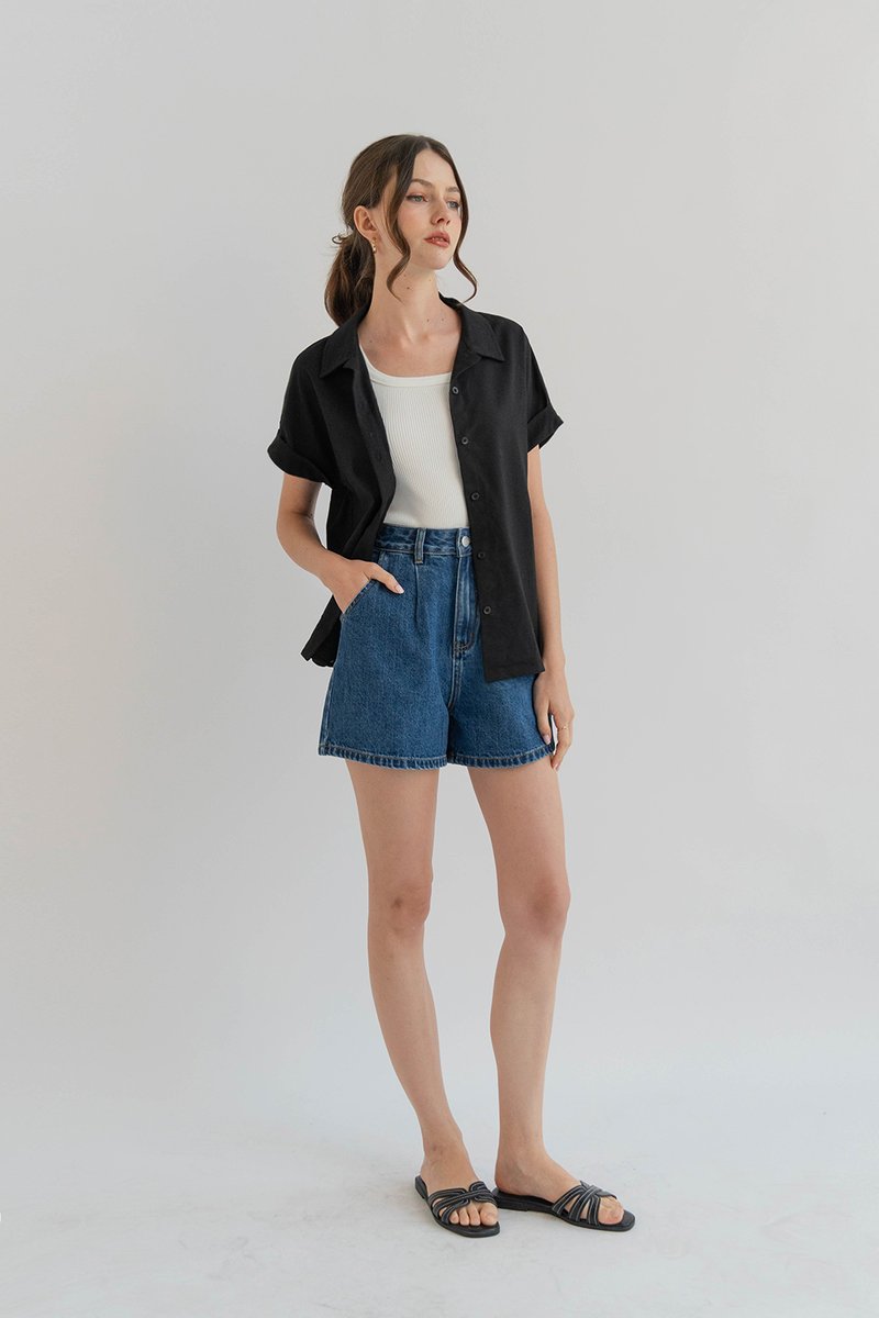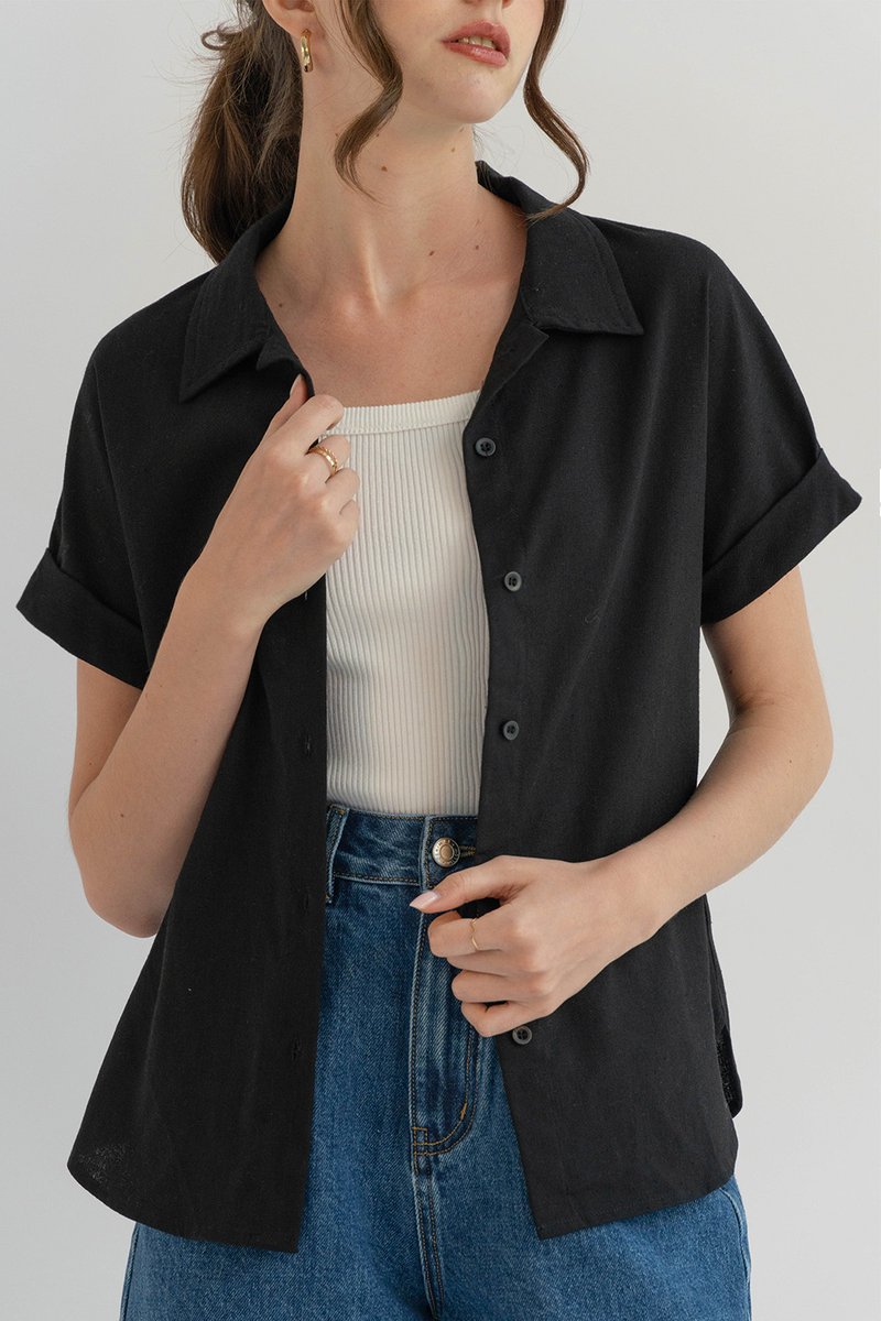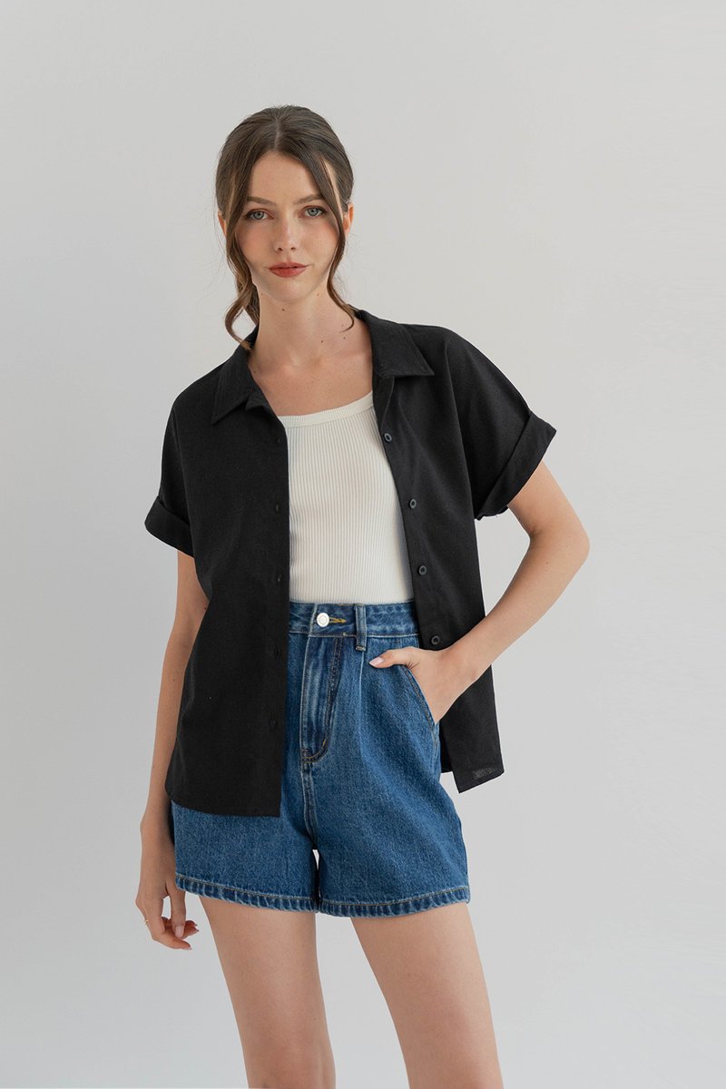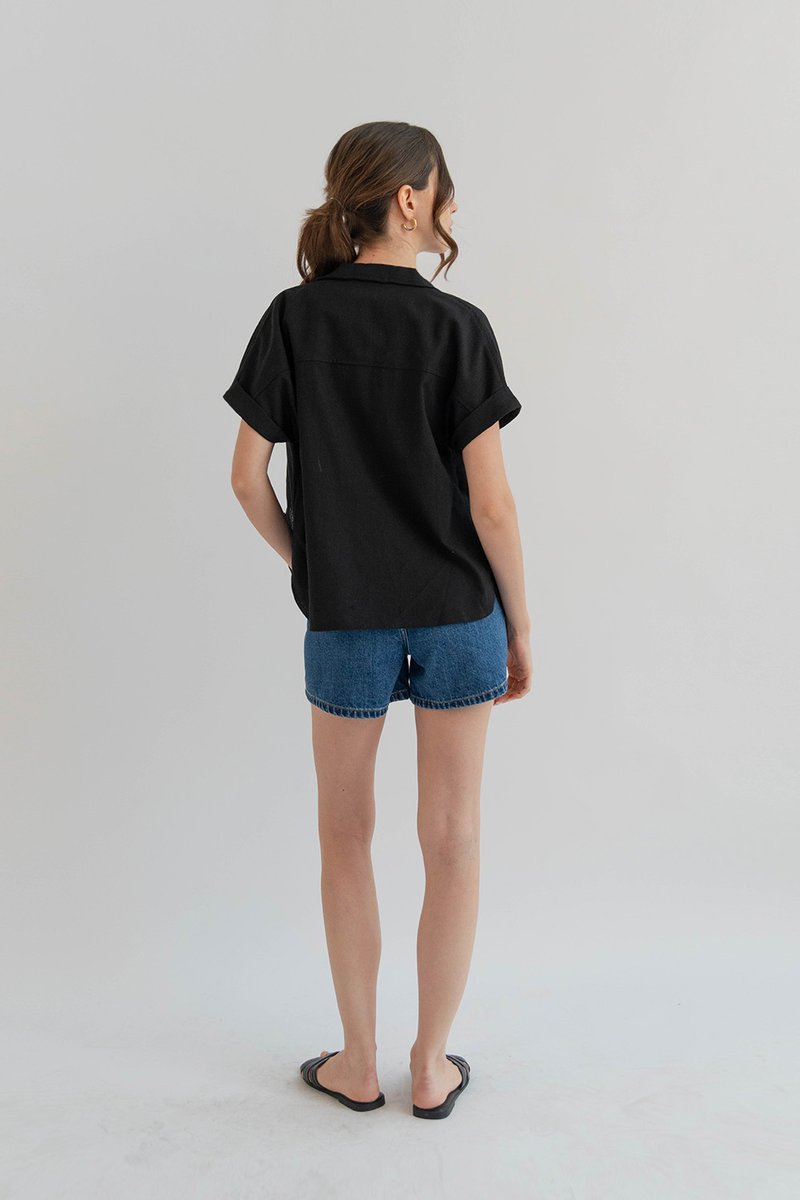 CASS CUFFED SLEEVE SHIRT BLACK
