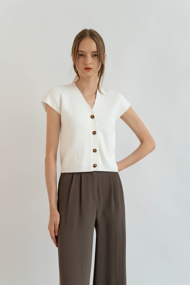 BRONTE KNIT BUTTON TOP WHITE