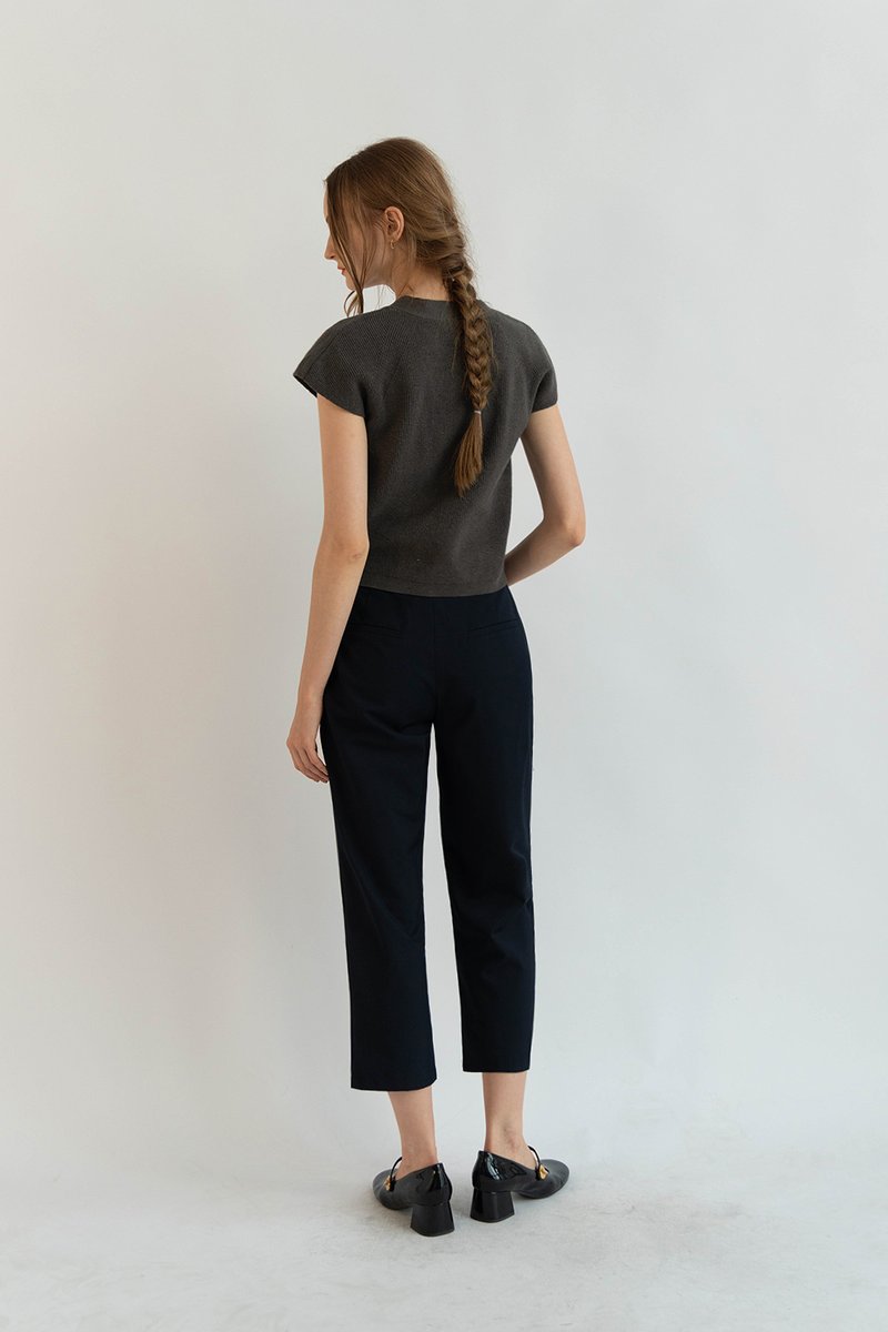 Made of ribbed knit, unlined and stretchable. Comes with functional button down closure.