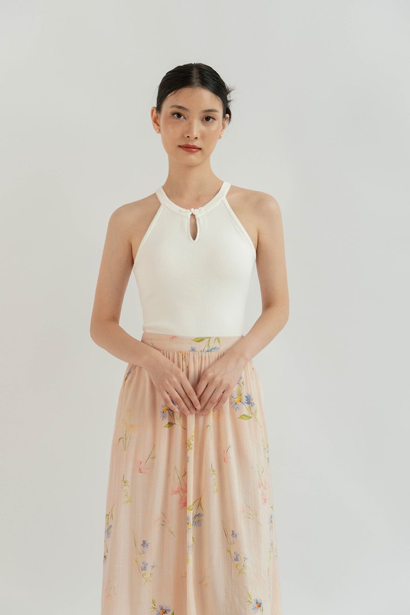 YAN MANDARIN COLLAR CHEONGSUM KNIT TOP (PADDED) WHITE