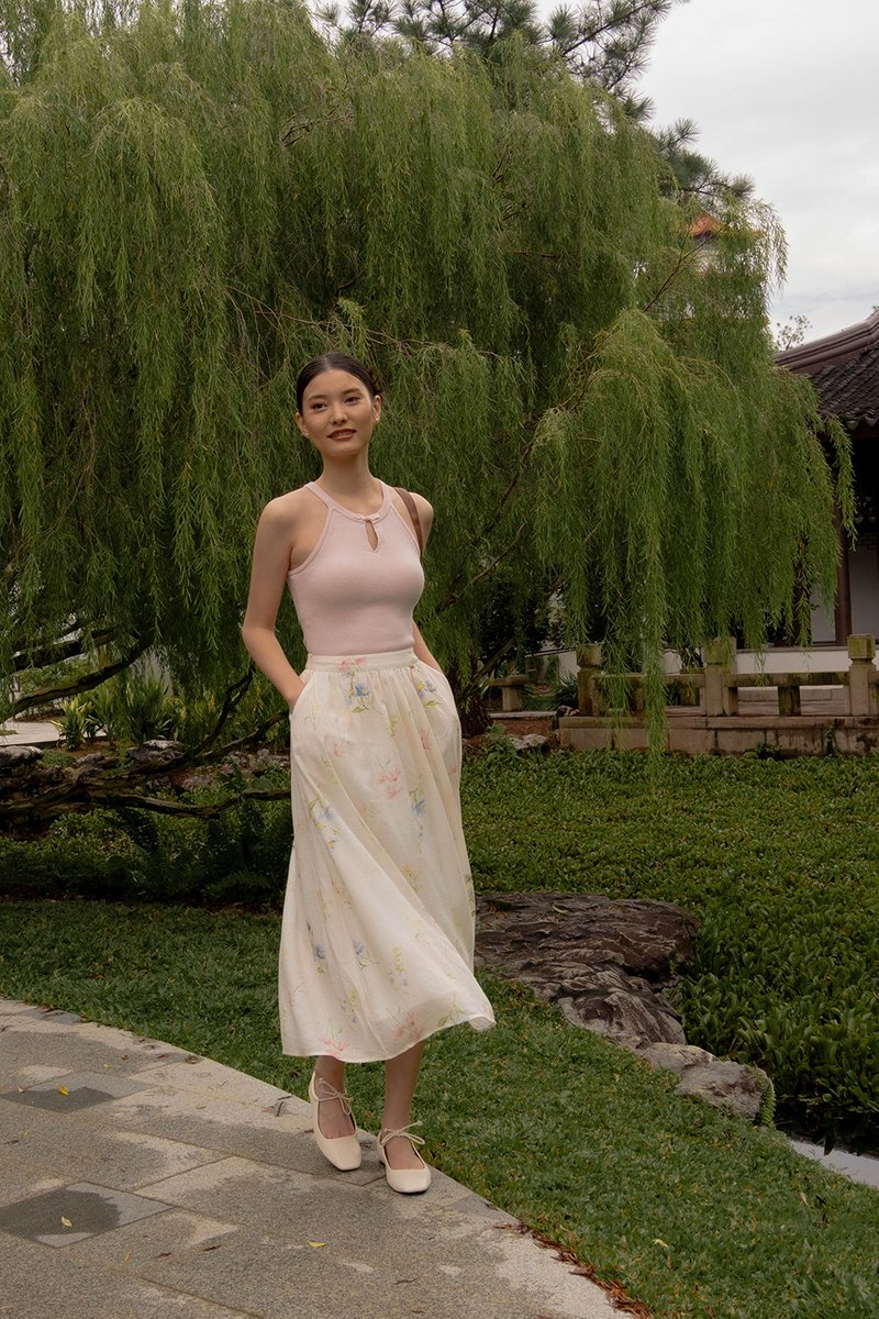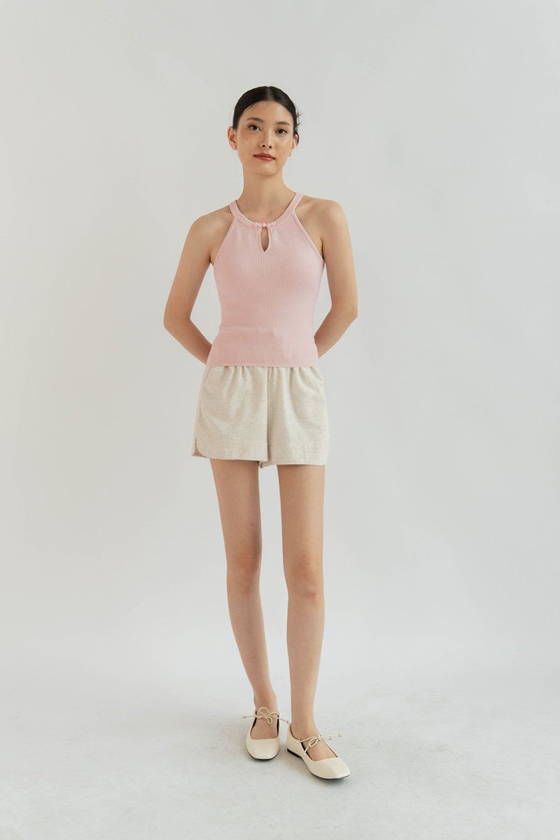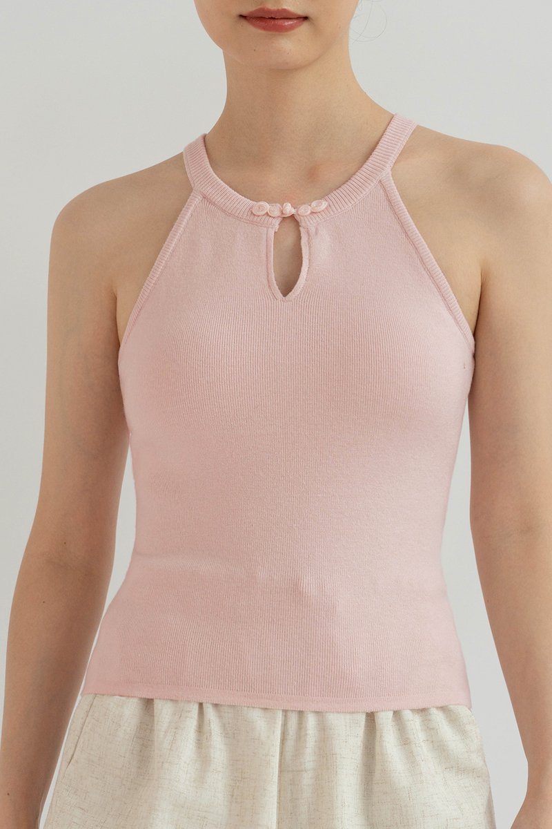 YAN MANDARIN COLLAR CHEONGSUM KNIT TOP (PADDED) SWEETPEA PINK