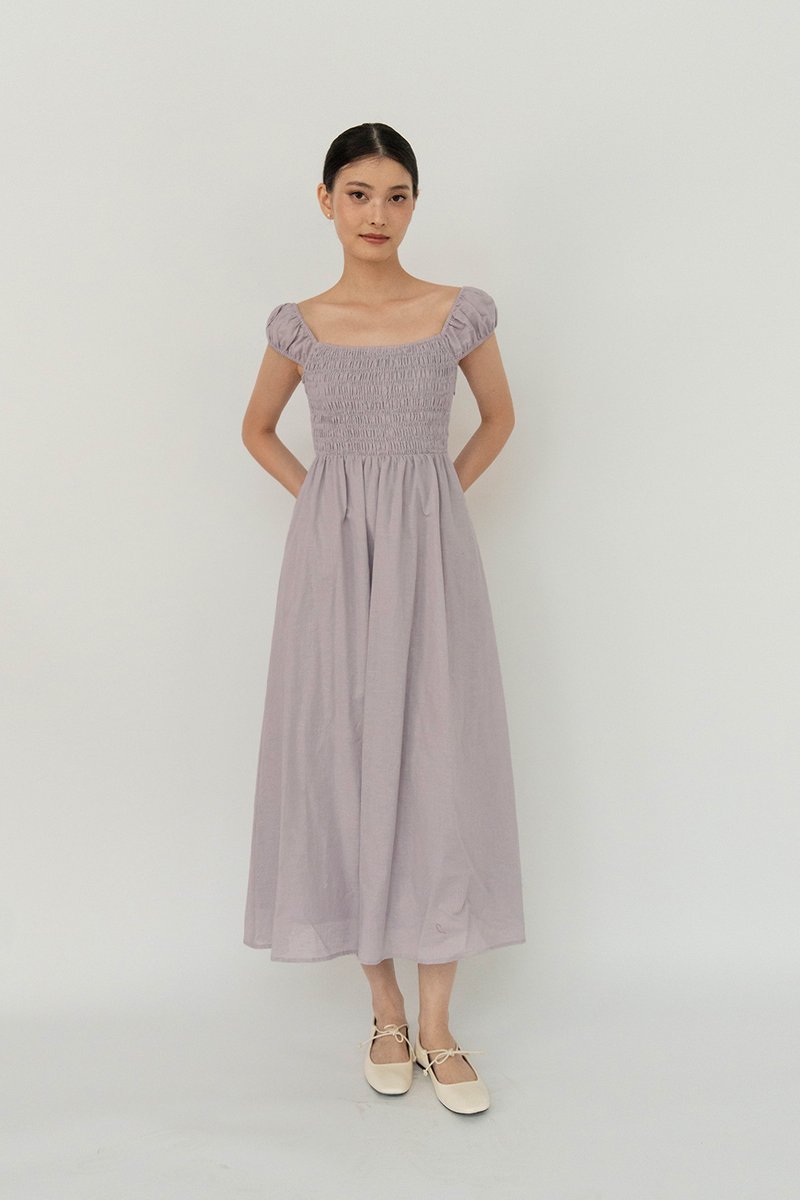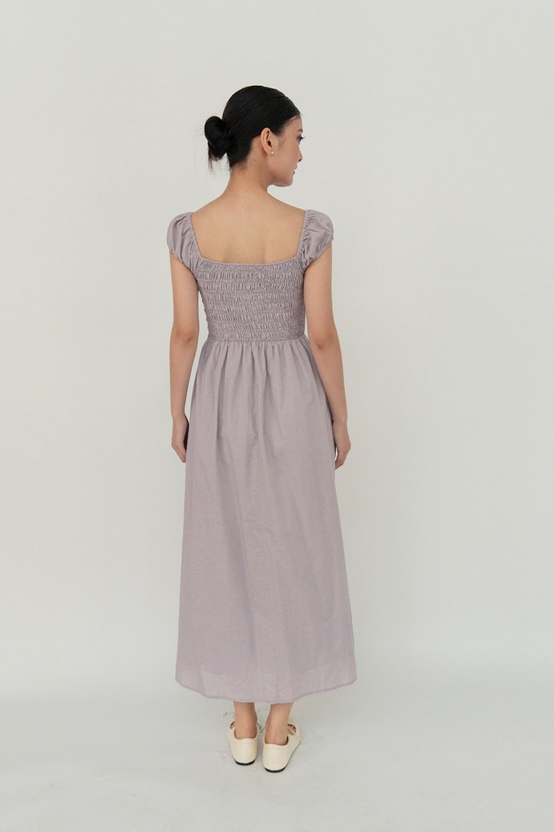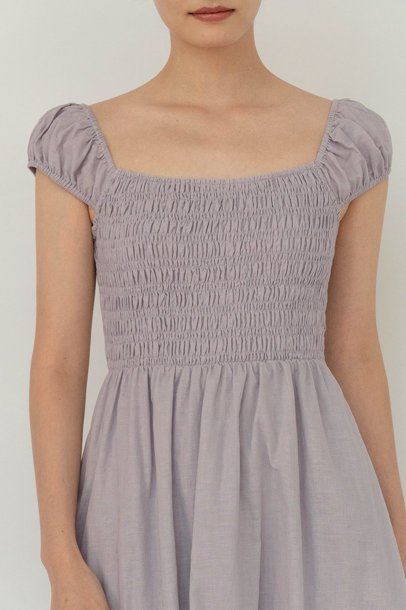 SOLENE SMOCKED LINEN DRESS MIST