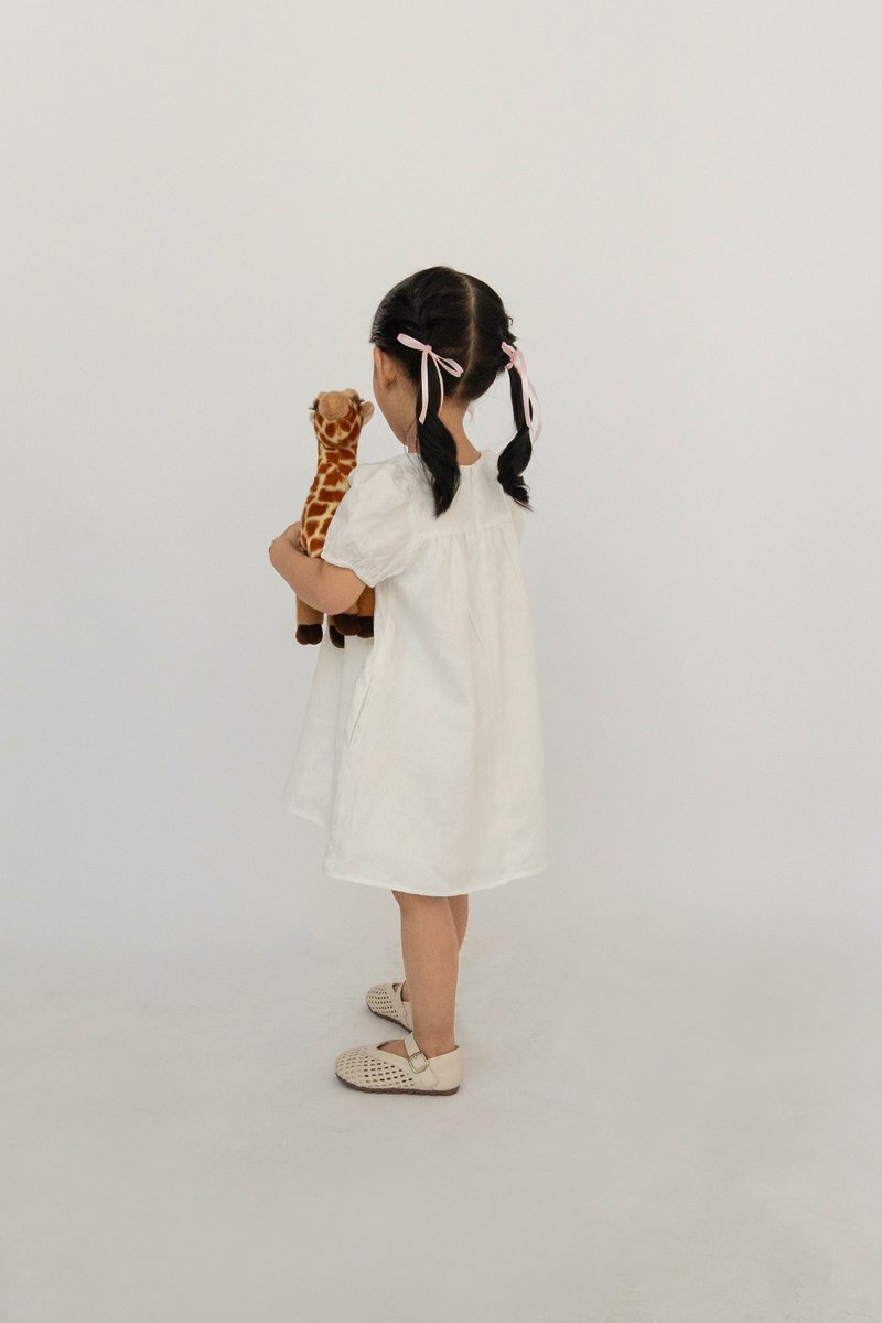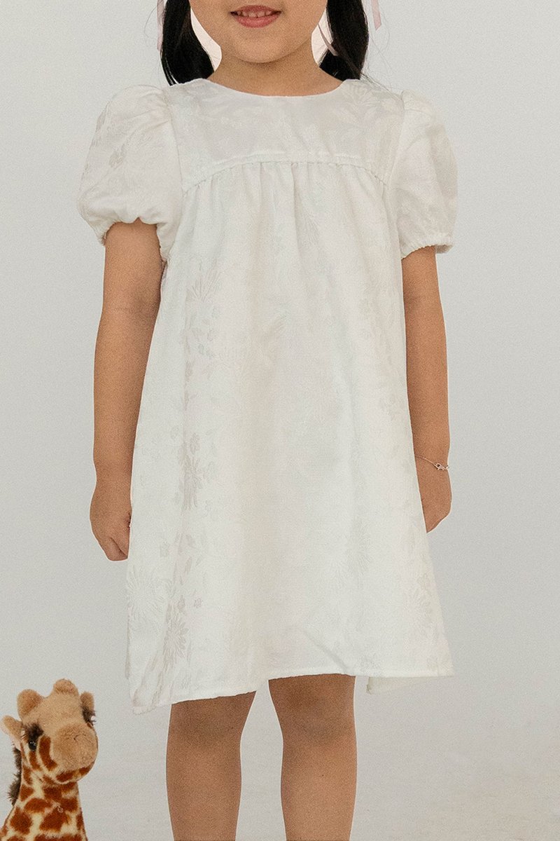 QIAO PUFF SLEEVE BROCADE MINI GIRL DRESS PEARL