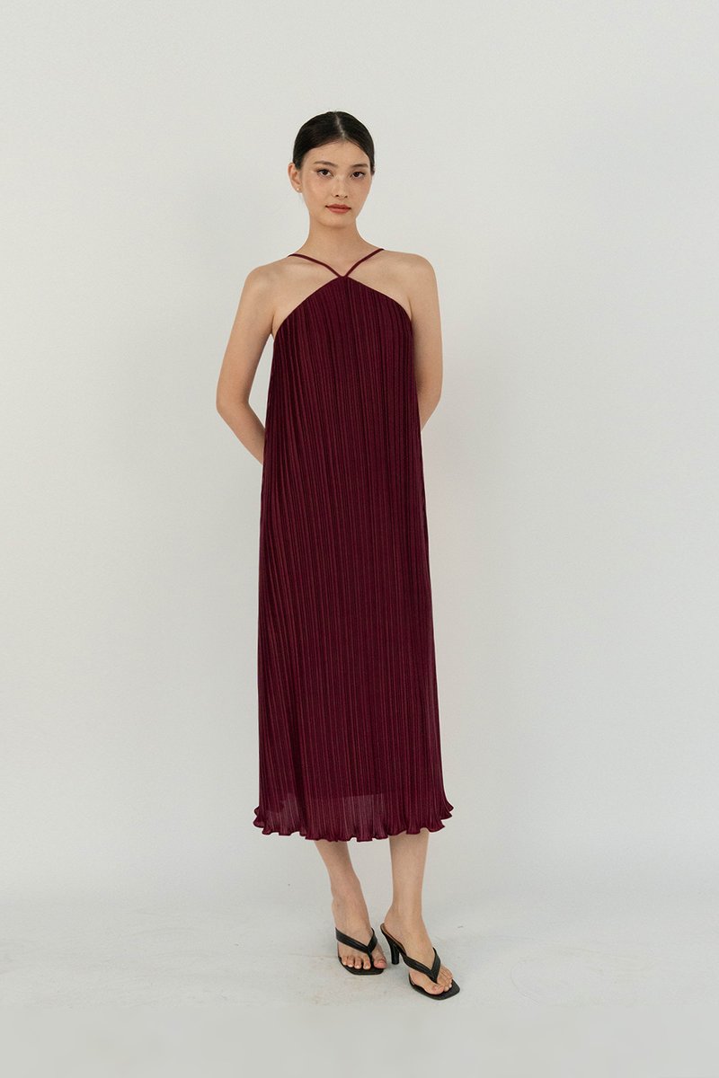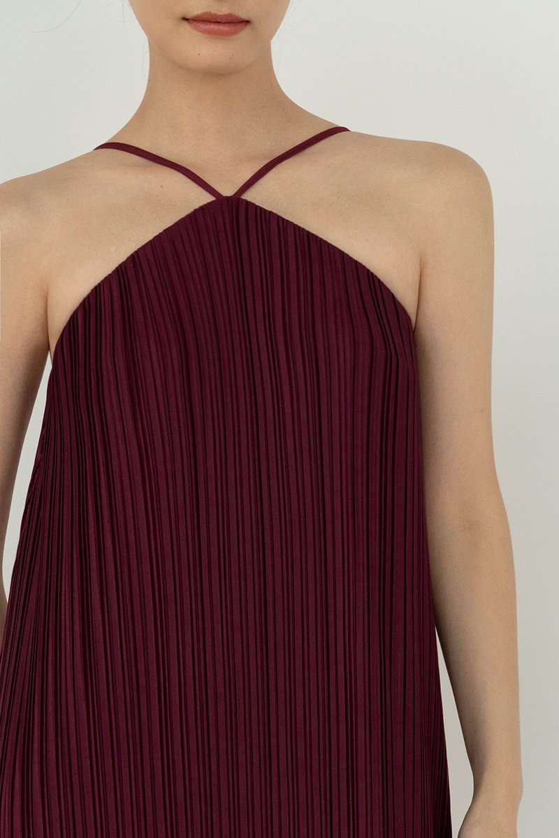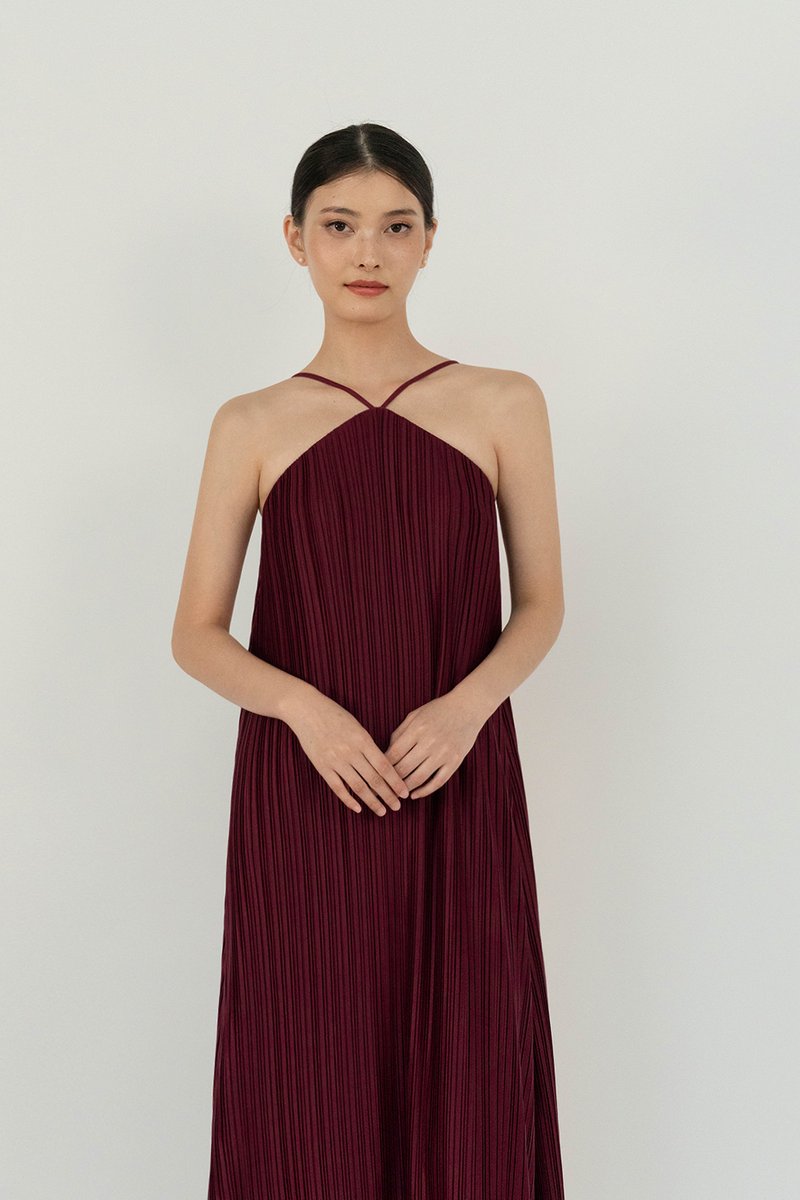 Made of pleated cotton polyester, lined and stretchable. Comes with adjustable shoulder straps and detachable matching sash not shown in the pictures.