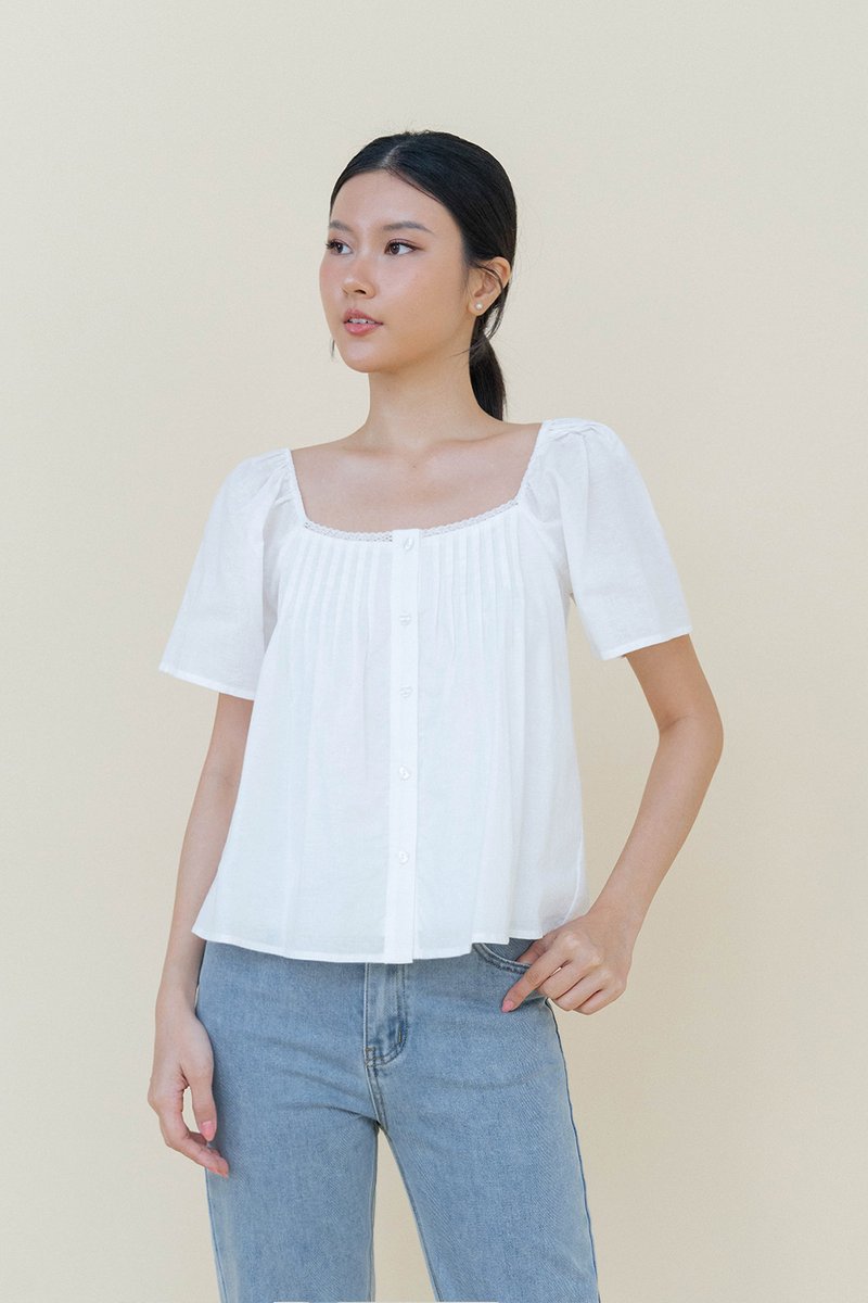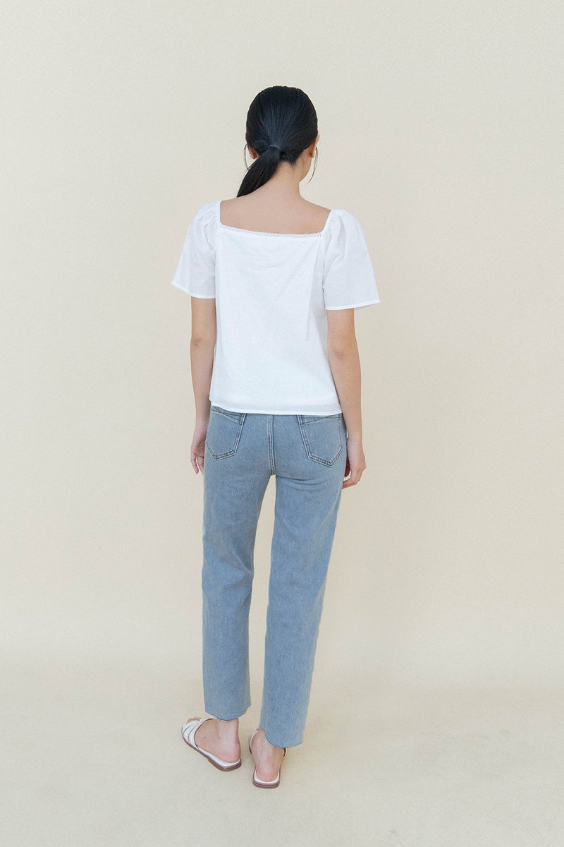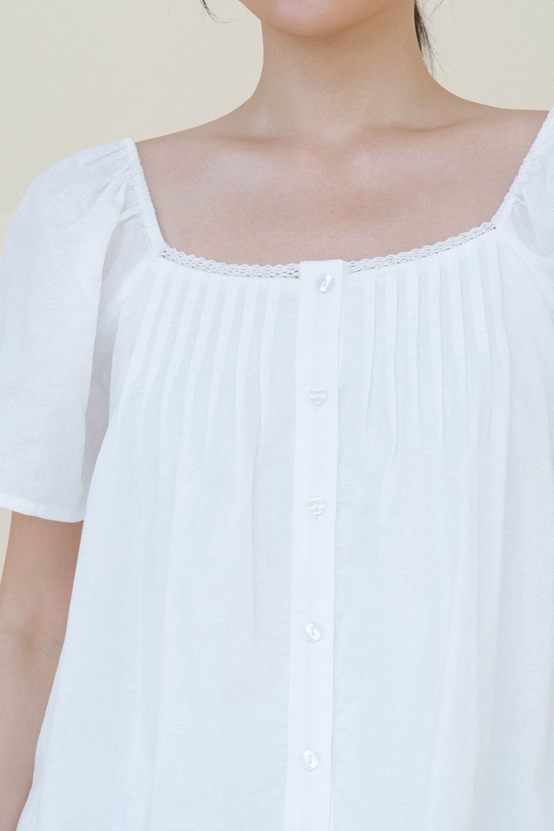 GEORGIA FLUTTER SLEEVE LINEN TOP WHITE