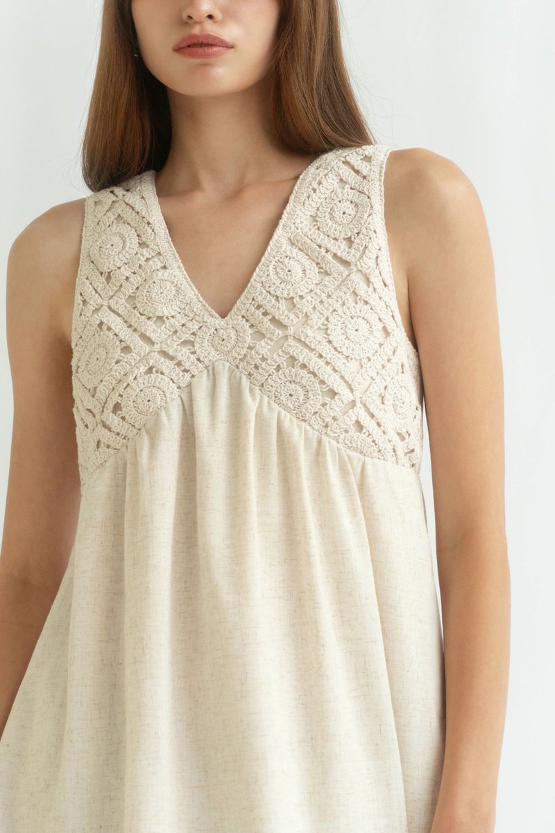 PRIS CROCHET BABYDOLL DRESS SAND