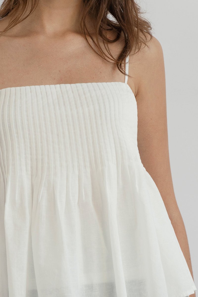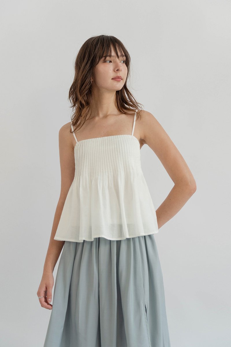 SANA PINTUCK LINEN CAMISOLE TOP WHITE