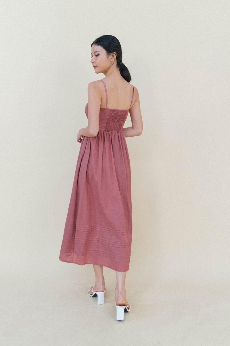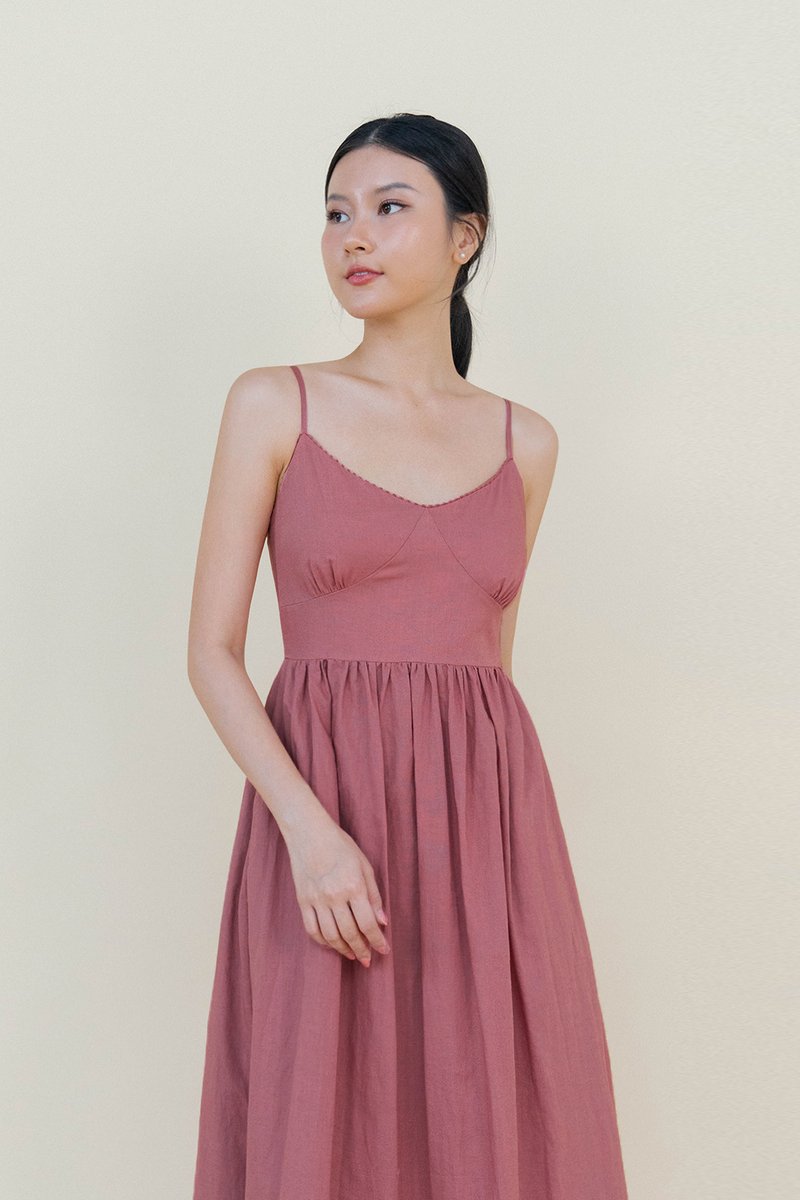 SCARLETT CROCHET TRIM LINEN PADDED DRESS PINK