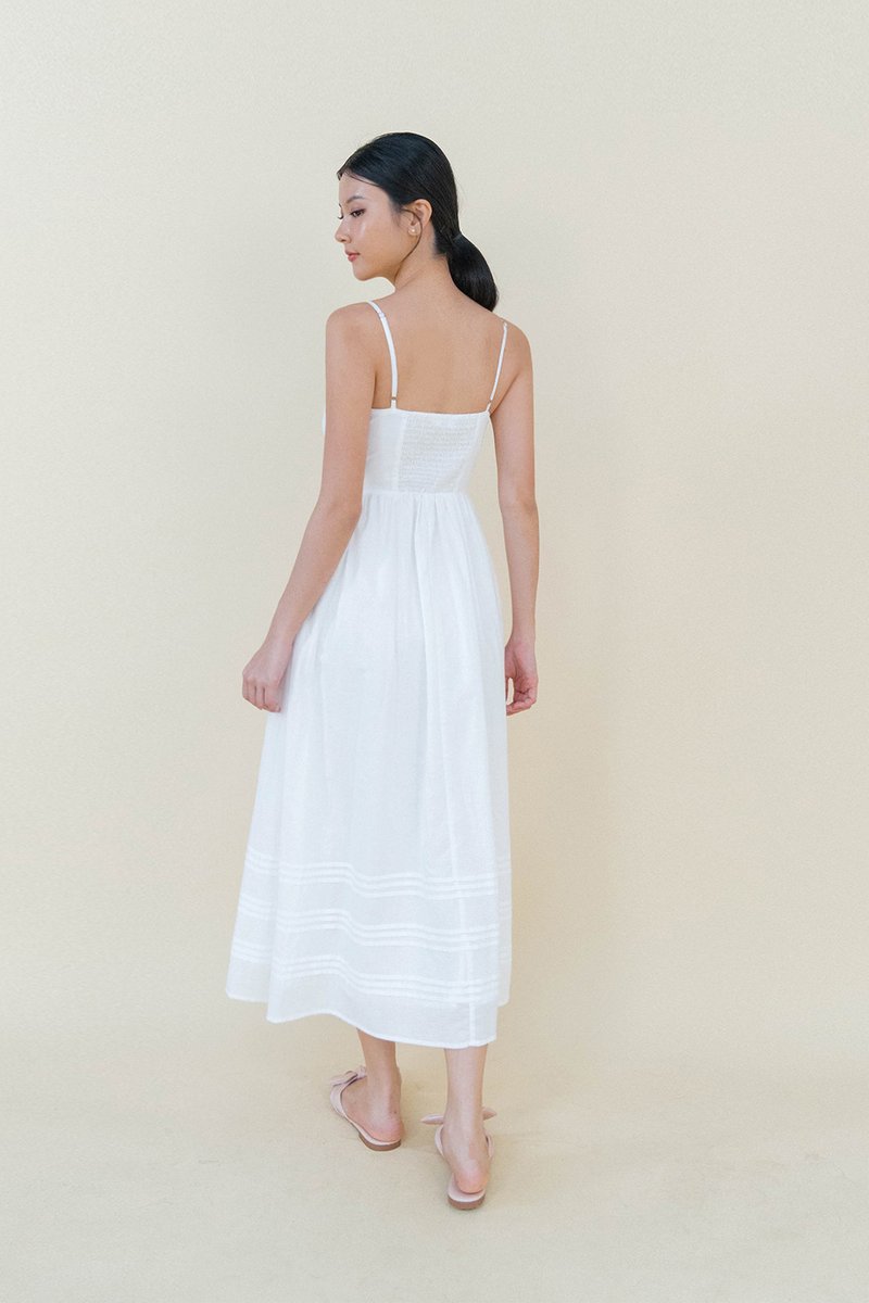 SCARLETT CROCHET TRIM LINEN PADDED DRESS WHITE