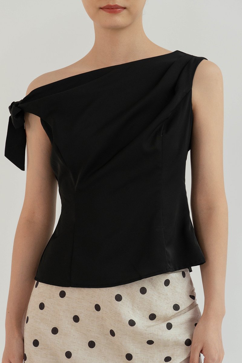 TINSLEY OFF SHOULDER TIE TOP BLACK