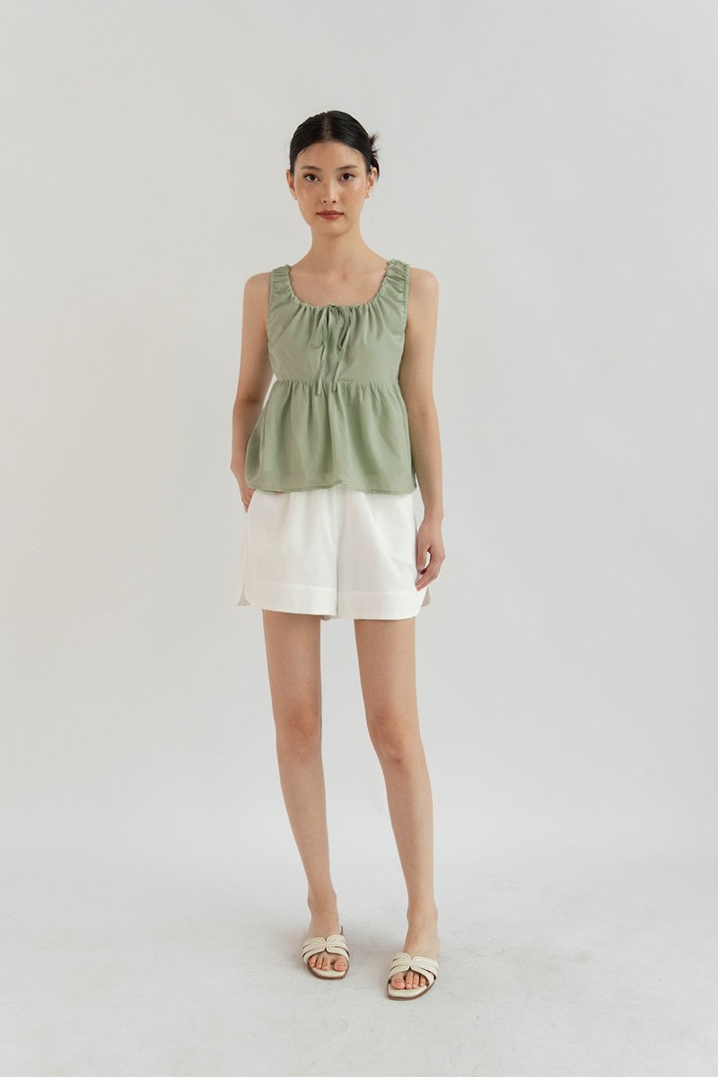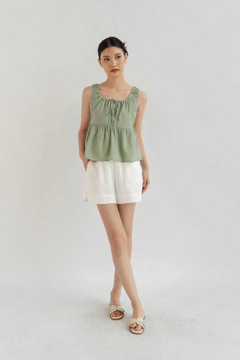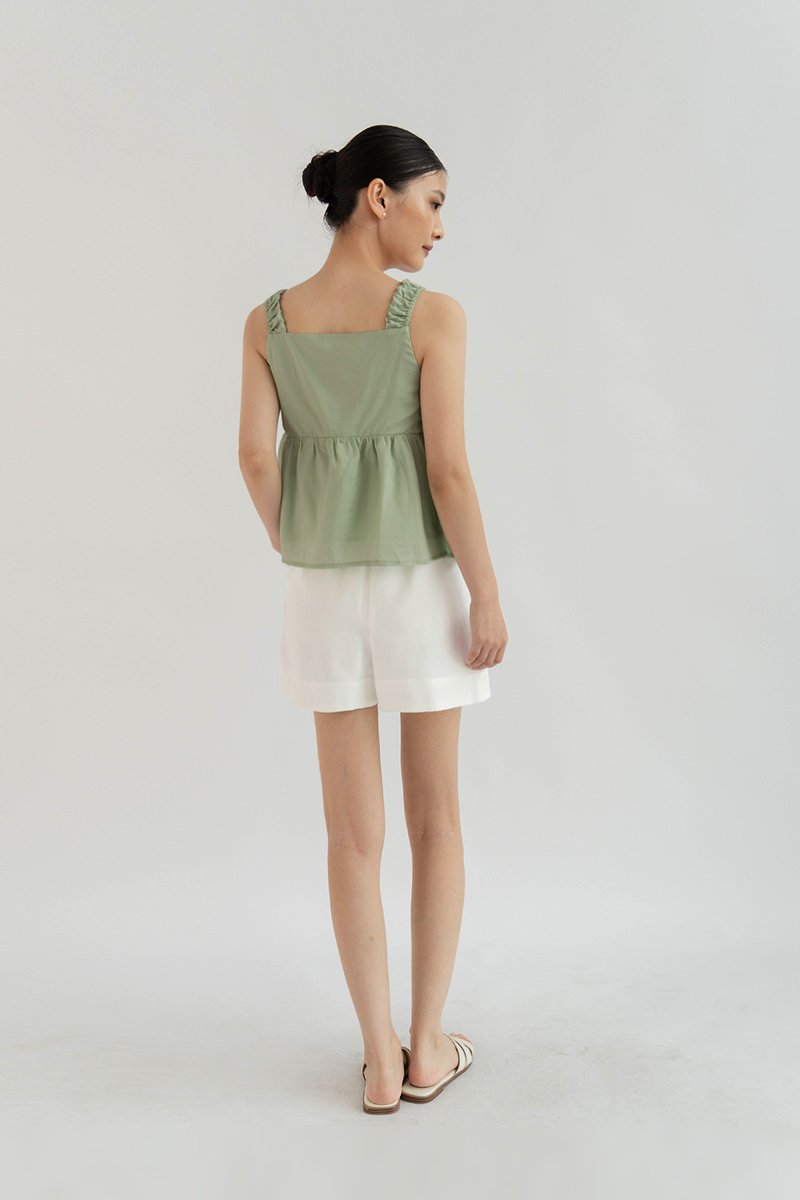 VANNA CURVED HEM SHORTS LINEN WHITE